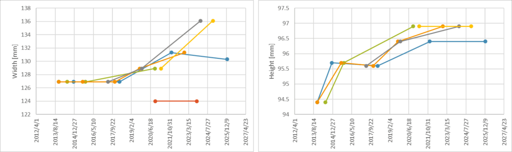 また、ここで載せていない奥行きは増えている。多分マルチアングル液晶のせいかな?