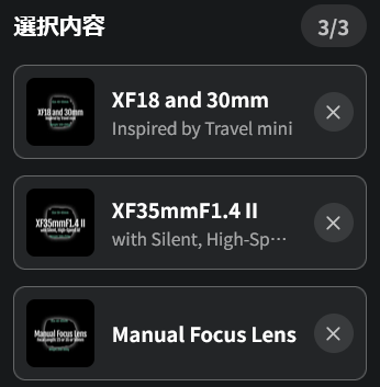 ということで私が投票したのは、XF18&30, XF35/1.4 II(高速AF), MFレンズ。
