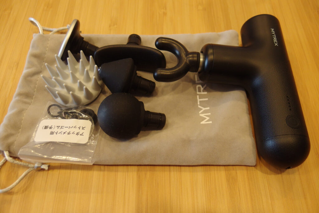 Mytrexのマッサージガン。妻が同メーカーの同様の製品を使っており、たまに借りていたが、中古で安かったので自分用にも買った。正直、これは肩こりにかなり効く。とても良い。