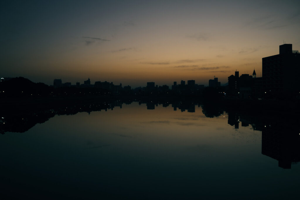 風のない湖のように空を反射する河。多分F4絞り。