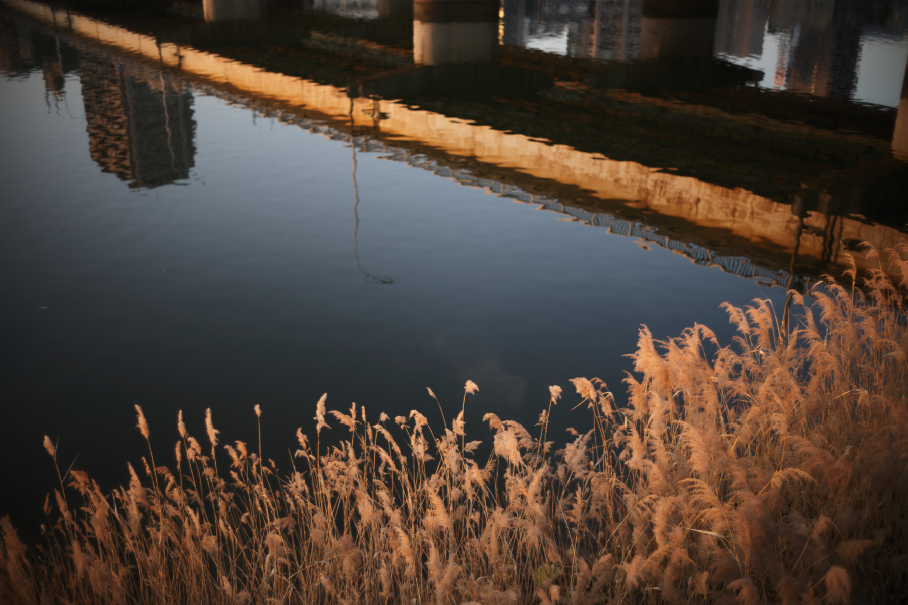 風のない湖のように空を反射する河。多分F4絞り。