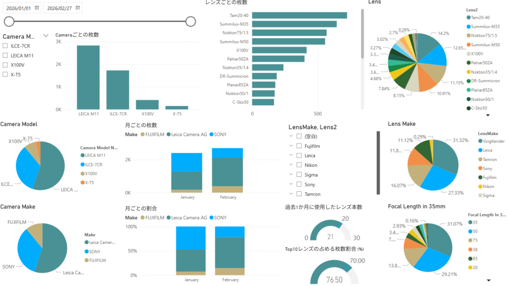 今年も約2か月が経過したが、現在のダッシュボード。今年買った2本は、Summilux 35/1.4もNokton 75/1.5もなかなか手ごわいので、習熟のために撮りまくっていて、2位と3位につけている。