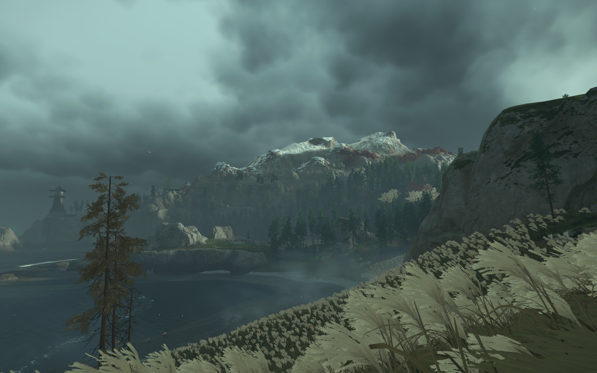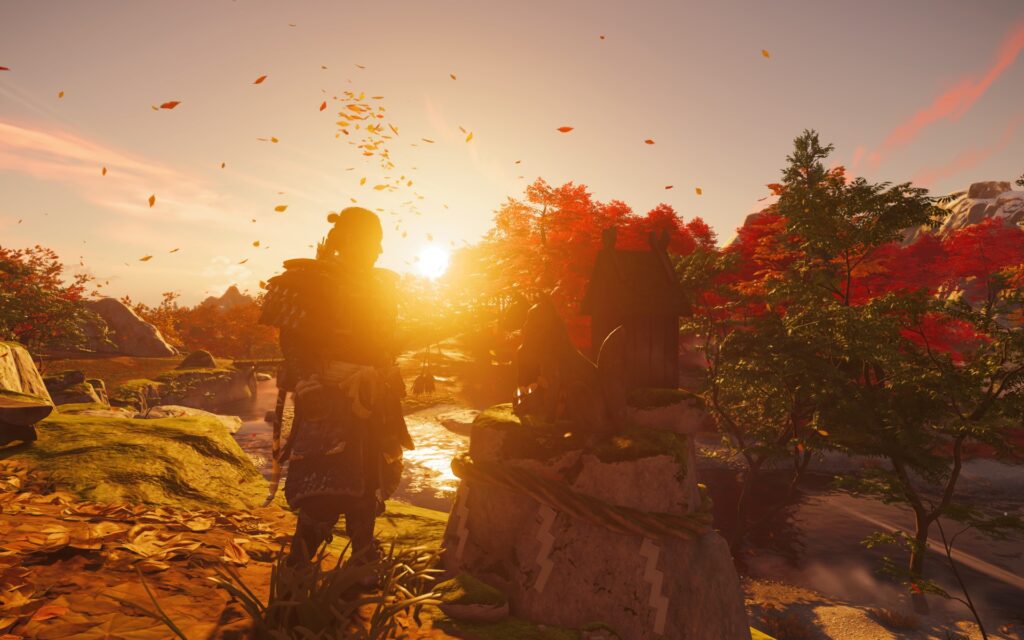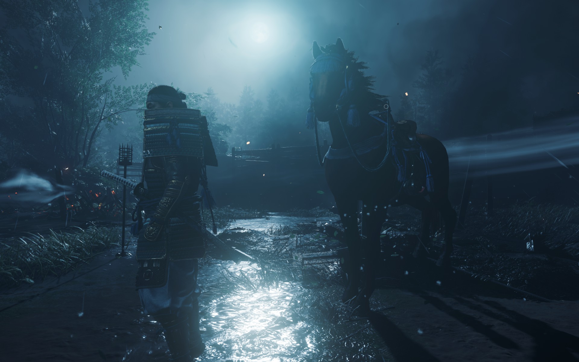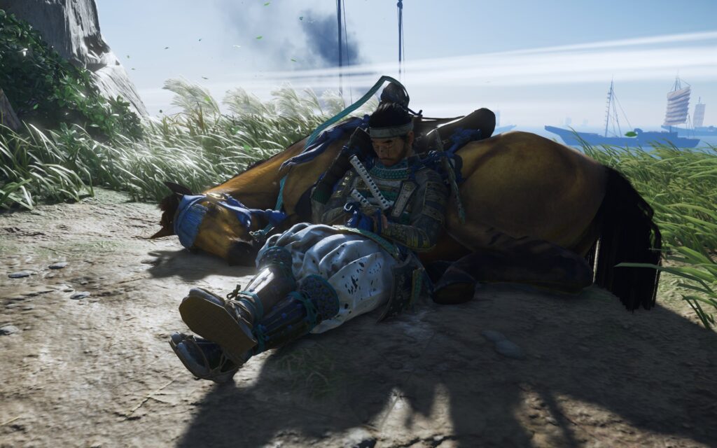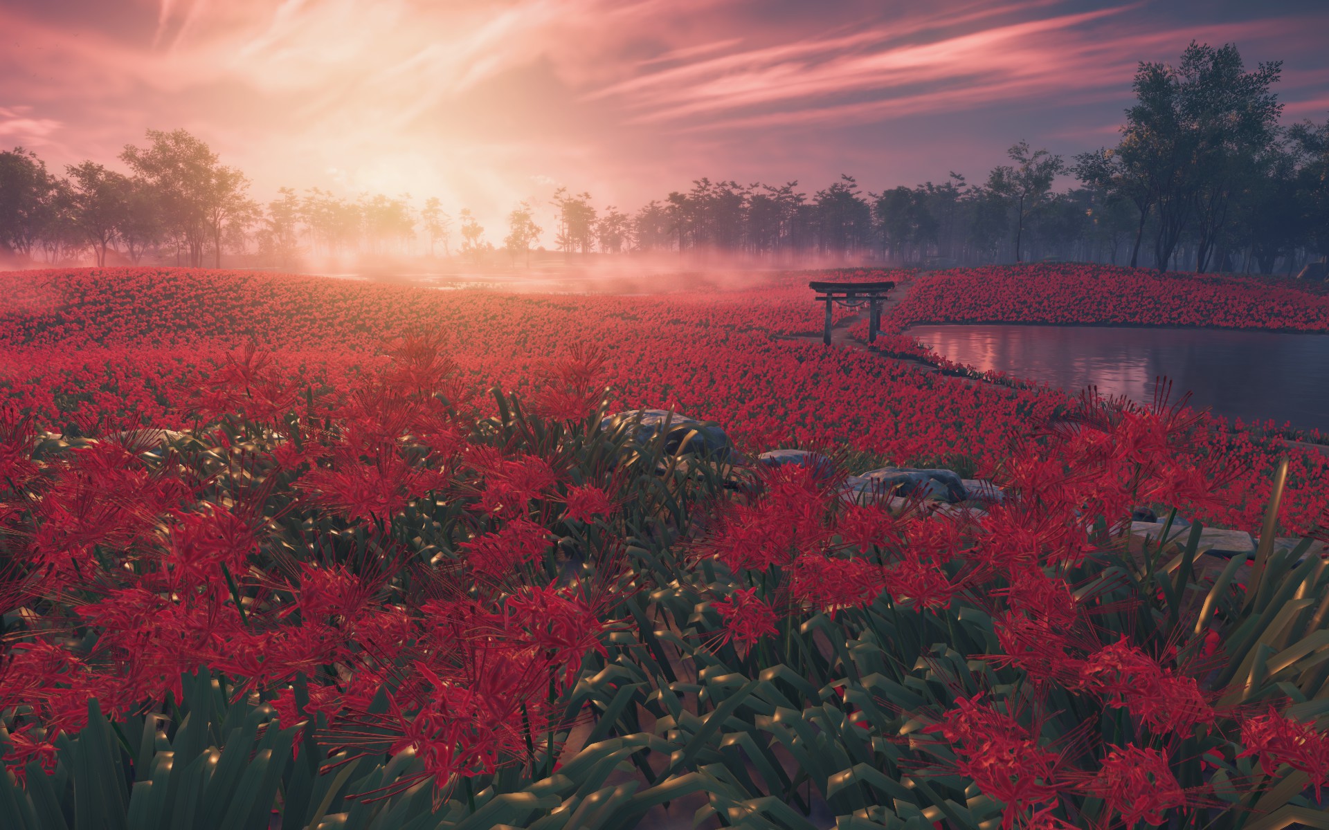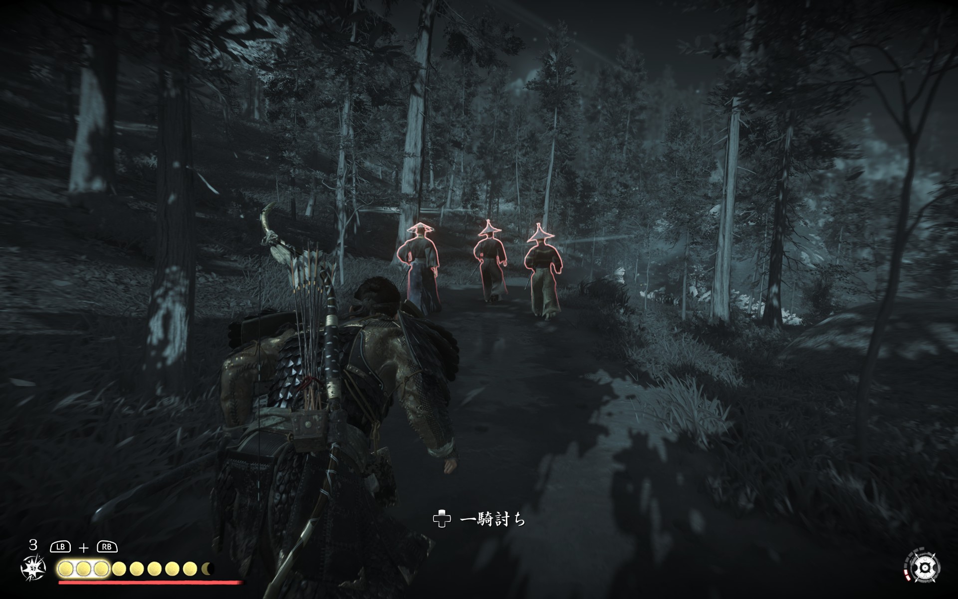 美しいのに禍々しい。世界観はとても殺伐としているが、こういう心打たれる風景を見せてくる。ブレワイもホグワーツレガシーもこのTushimaも、移動が楽しいから極力ファストトラベルは使わない。移動が苦行なFF7とは違う。