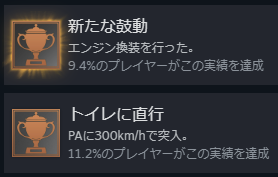 意外なことに、エンジン換装したプレイヤーは9.4%もいるらしい。多いな。トイレに直行したプレイヤー数と大差ないではないか。ラーメン伸びたとか逆転の美学とかは4%くらいなので、もっと少ない。